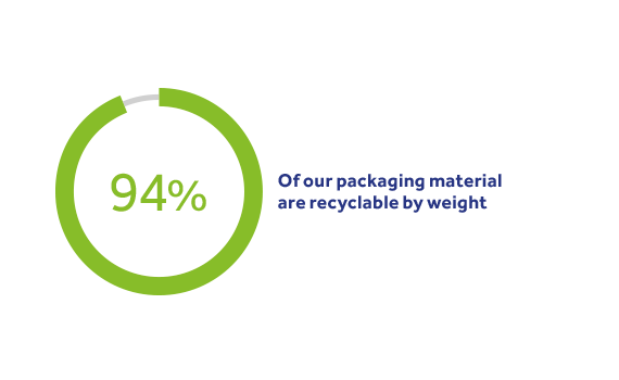 We have made steady progress towards PVC free packaging. With a commitment to eliminate the use of PVC in our packaging, this year, we restricted the PVC consumption to 0.4% of the total packaging material used.